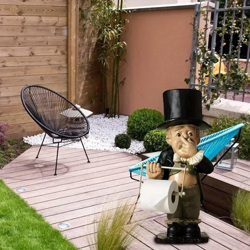 Charming Toilet Butler Figurine – Resin Bathroom Tissue Holder, Self-Adhesive Wall Mount, Cute Home Decor Accessory, Christmas/Halloween Gift Decoration