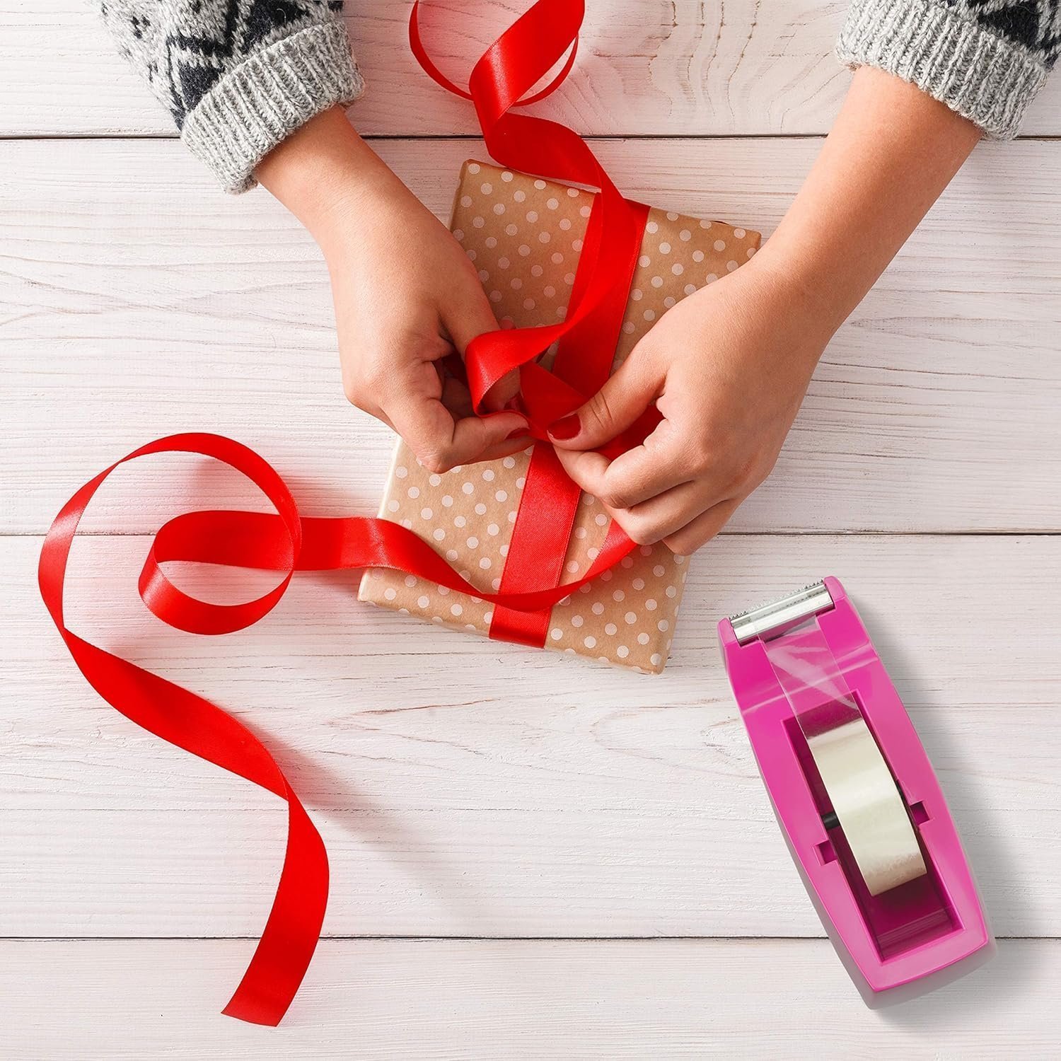 • CONVENIENT USE – Stylish tape dispenser useful for gift wrapping for birthdays and Christmas, making collages for school projects, mending papers and small objects around the home or office, labelling boxes in retail and many more